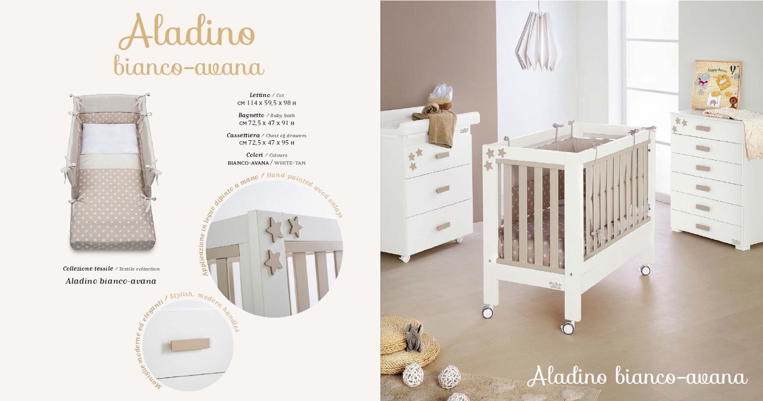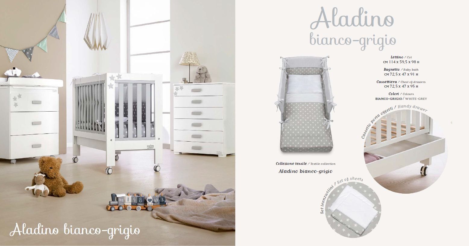 Tutte le funzioni e la versatilità di INSIEME, il valore aggiunto di un cassetto integrato e la possibilità di una versione bicolor. ALADINO è la soluzione ideale per spazi e tempi moderni. Con la rete fissabile su tre posizioni distinte e la sponda di sicurezza, ALADINO regala a genitori e bebè sonni sicuri e sogni favolosi.